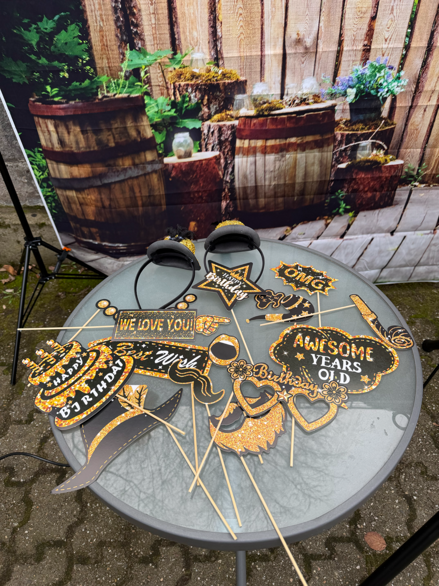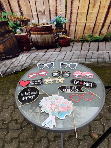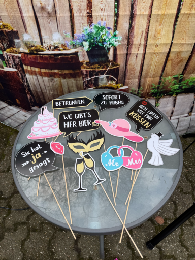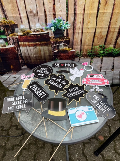 Hier könnt ihr aus einer Vielzahl an Requisiten die passenden Accessoires für euer Event auswählen. Ob lustig, elegant oder thematisch abgestimmt – bei uns findet ihr genau das Richtige, um eure Fotos noch kreativer und einzigartiger zu gestalten.