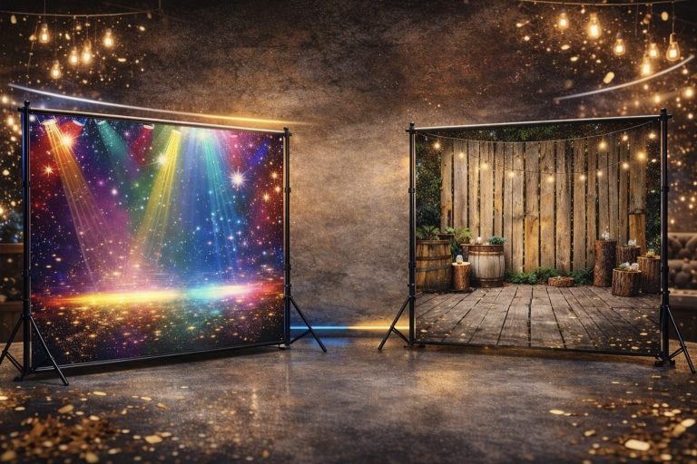 Mit unseren Rückwandbannern wird Ihre Fotobox zum echten Hingucker und sorgt für noch schönere Bilder. Wählen Sie aus verschiedenen Designs oder lassen Sie sich ein individuelles Motiv erstellen – für unvergessliche Erinnerungen mit dem perfekten Hintergrund.